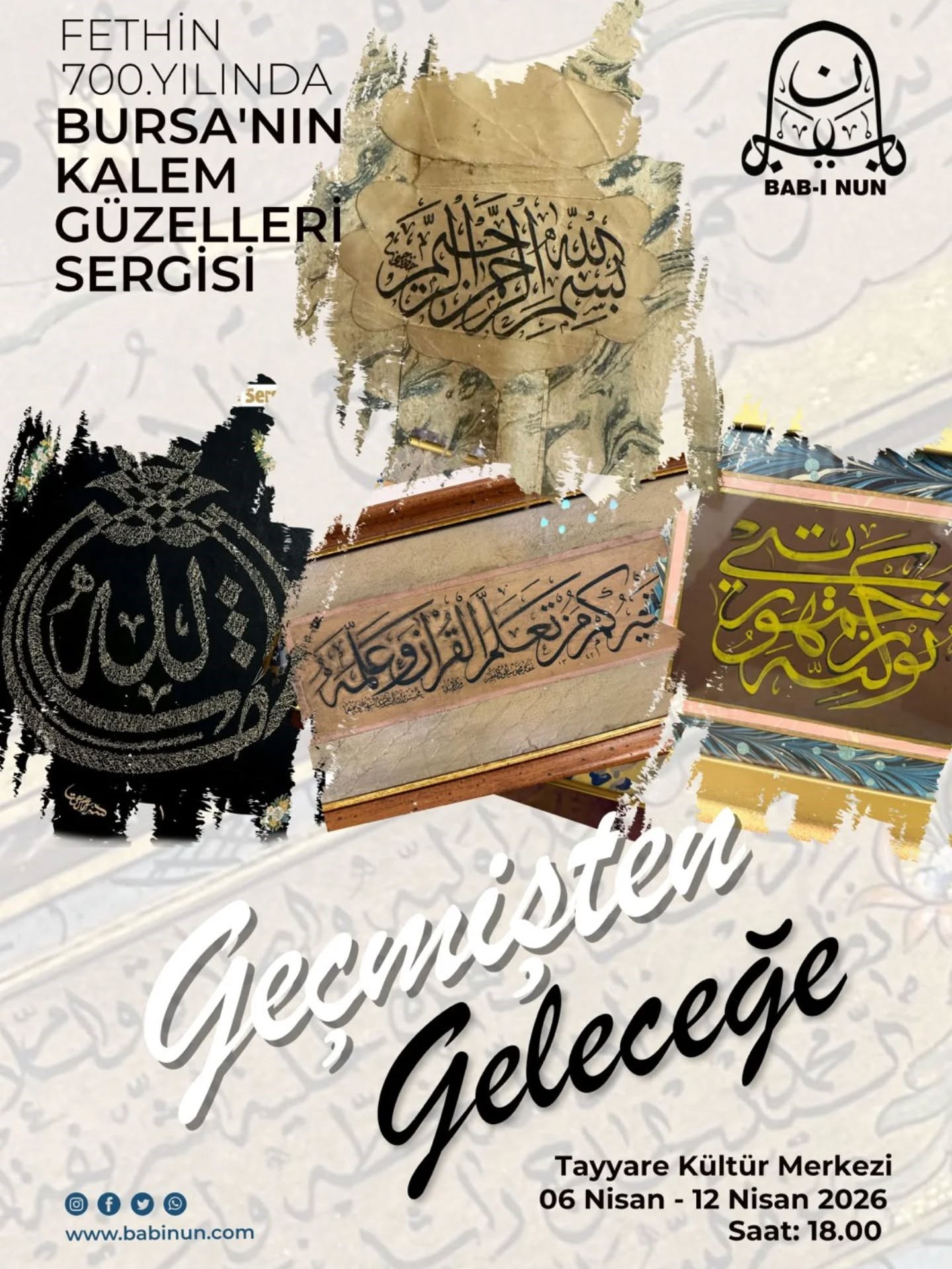 Irgandı Köprüsü’nde gelenekli sanatların ihyası için faaliyetlerini sürdüren Bab-ı Nun Derneği’nin müessisi Hattat Mahmut Şahin hocanın öncülüğünde tertip edilen sergi, 6 Nisan 2026 Pazartesi günü Bursa Tayyare Kültür Merkezi’nde sanatseverlere kapılarını açtı. Sergide, 55 nadide eser ilk defa gün yüzüne çıkarıldı.