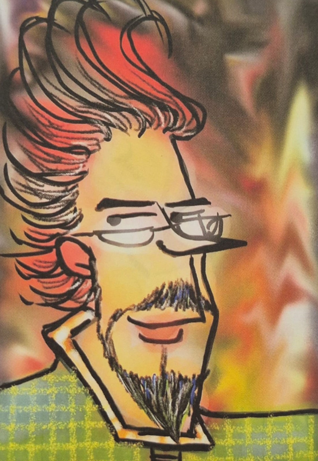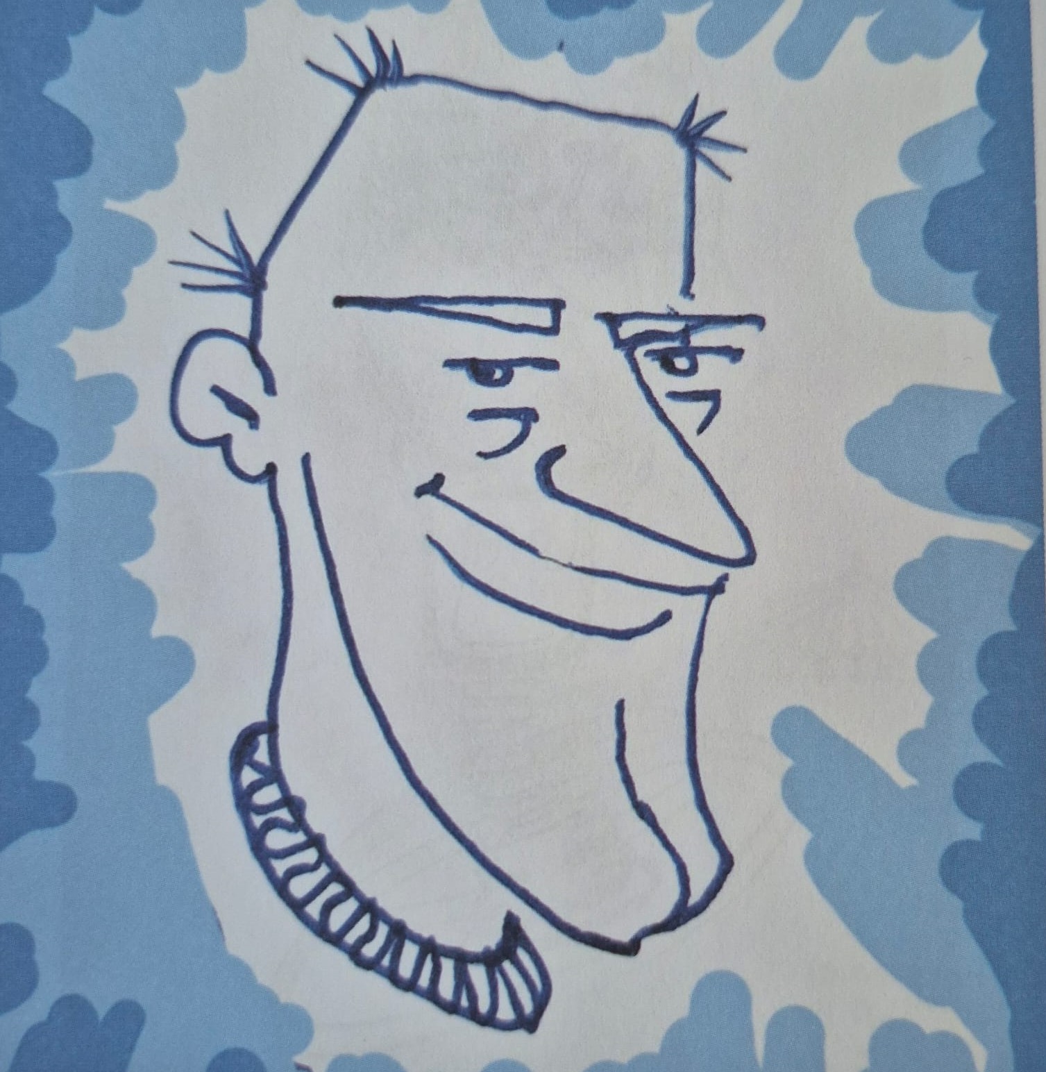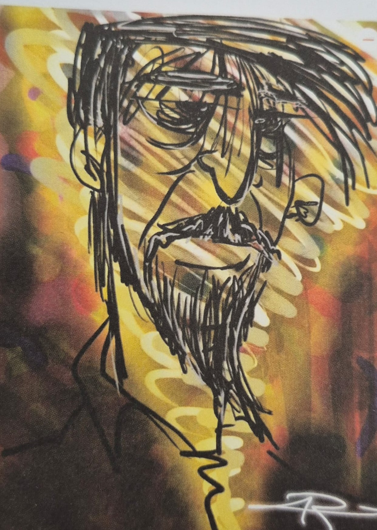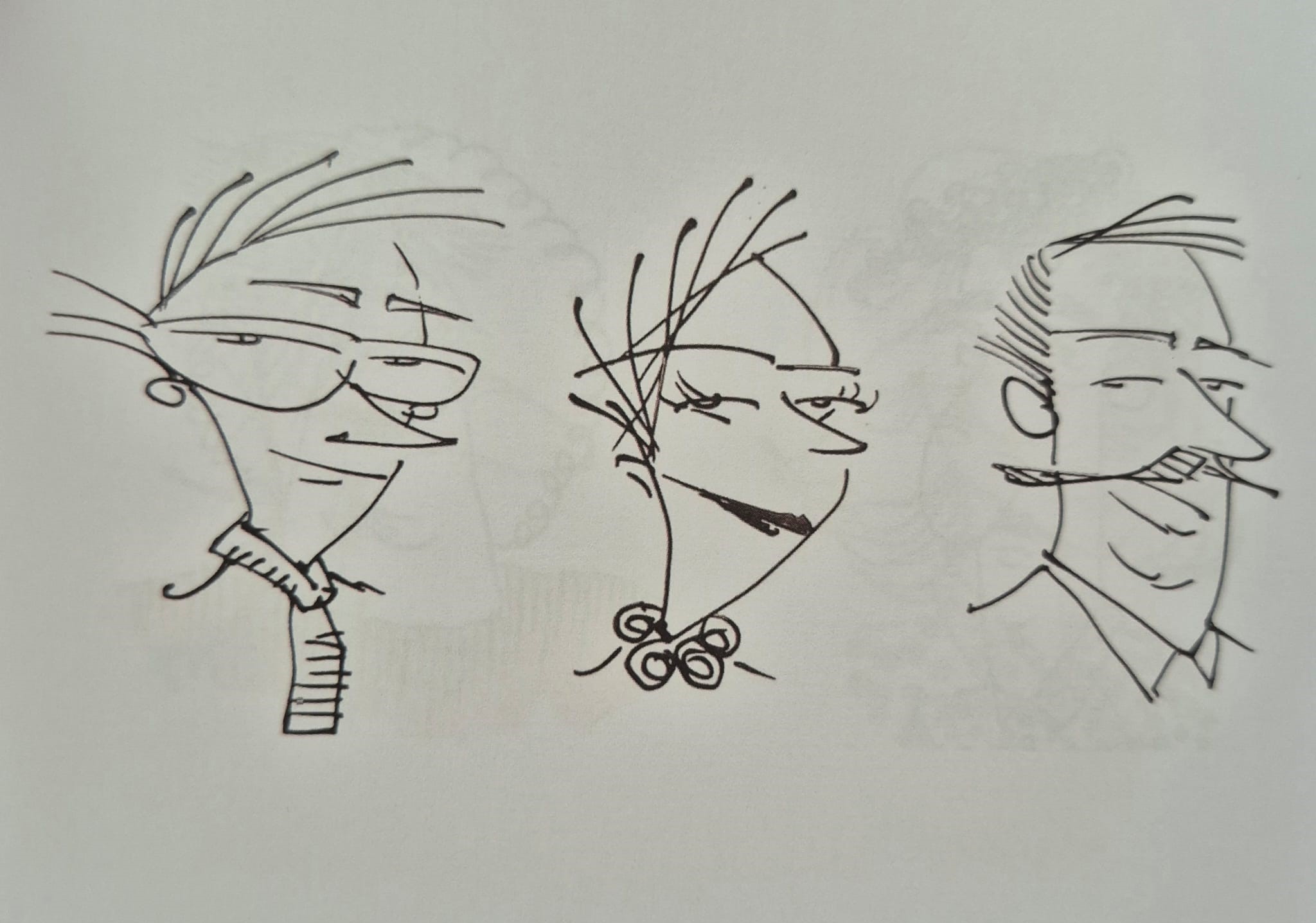 Merak bu ya, kapağı rastgele araladım; küçük bir tefeül yaptım. –Bu keyfiyet bana Yener Sonuşen’den sirayet etti!– Karşıma 169 numaralı çizim çıktı: Biteviye dökülen saçlarının aksine kaytan bıyıklı bir “aramızdaki”! Sanki kocaman gözlüklerinin altından, sayfanın orta yerinden bana bakıyor, “Buradayım.” der gibi!