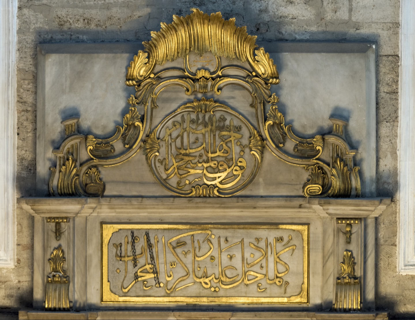 Sultan III. Selim tarafından 223 yıl önce yaptırılan ve binlerce kişinin ziyaret ve ibadet ettiği Eyüp Sultan Camii mihrabı üzerinde bulunan bezeme ve yazı üzerinde yapılan uygulama anlaşılır gibi değil.