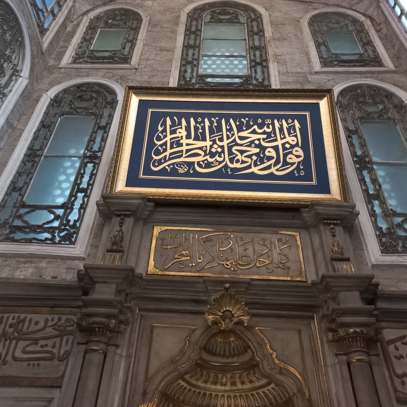 Türk rokoko üslubunun mimari ve tezyini sanatlarımızda etkili olduğu ve bu konuda ve çok güzel örneklerin verildiği 19. Yüzyıl başlarında yeniden yapılan  caminin mihrabını bezeyen rokoko motiflerden oluşan ve zer-endud tekniğiyle uygulanan güzel bir  desen ve desen ortasına yerleştirilen “Fevelli vecheke şatra’l-mescidi’l-harâm/Yüzünü Mescid-i Haram tarafına çevir” (Bakara sûresinin 144, 149 ve 150. Âyetlerinde peşpeşe gelen bir emir cümlesidir) âyeti aynı âyetin yazılı olduğu  yeni bir levha ile kapatılmış. Gerekçe 223 yıldır onca değerli bilim ve din insanın, ziyaretçinin  göremediği bezemenin  papaz siluetine benzemesi iddiası. Kim bu ilginç yakıştırmayı yapmış bilemiyoruz?. Bu komik uygulamadan derhal geri dönülmesi gerekir. Zira bu uygulama ile bu komik benzemeyi  görememekle itham edilen camiyi yaptıran, bezeten, bezeyen, ziyaret eden onca yöneticiye ve insana büyük bir haksızlık yapılmış olacak. Kaldı ki bezeme ve yazı oldukça etkileyici ve estetik görünüyor. Hiçbir kurumun ve  şahsın bu bezeme hakkında böyle asılsız yorum yapmaya ve bu estetik görüntü, bezeme ve âyeti kapatmaya hakkı ve yetkisi yoktur. Asl olan niyettir! Kalp neyi hissederse onu yansıtır… Keşke böyle garip bir  uygulama yapılmadan önce üniversitelerimizin Geleneksel Türk Sanatları Bölümlerinin değerli öğretim elemanlarına danışılıp, bilgi alınsaydı.