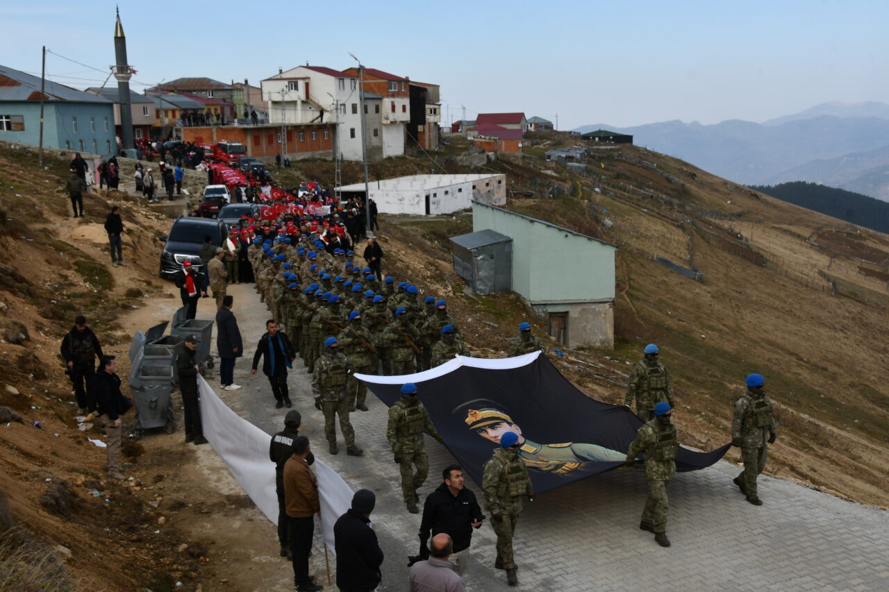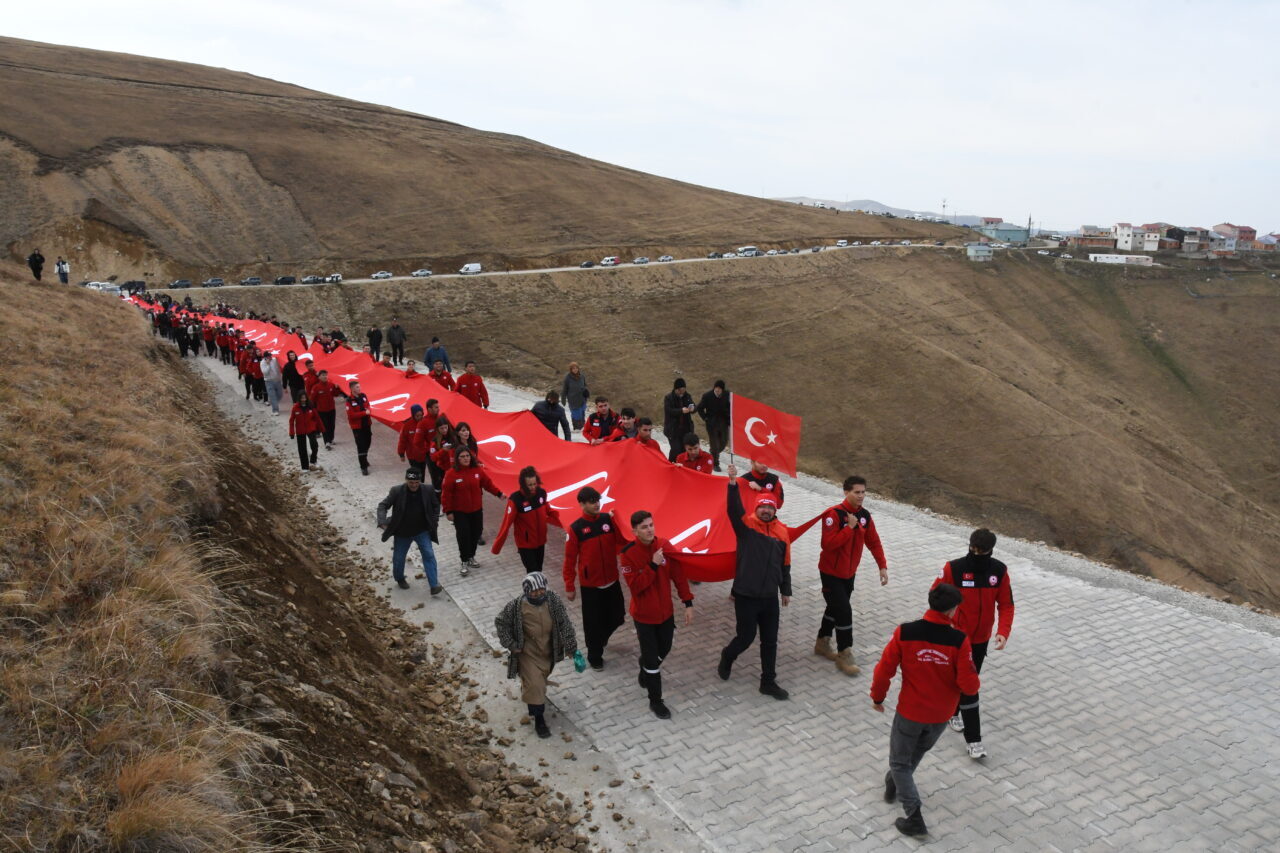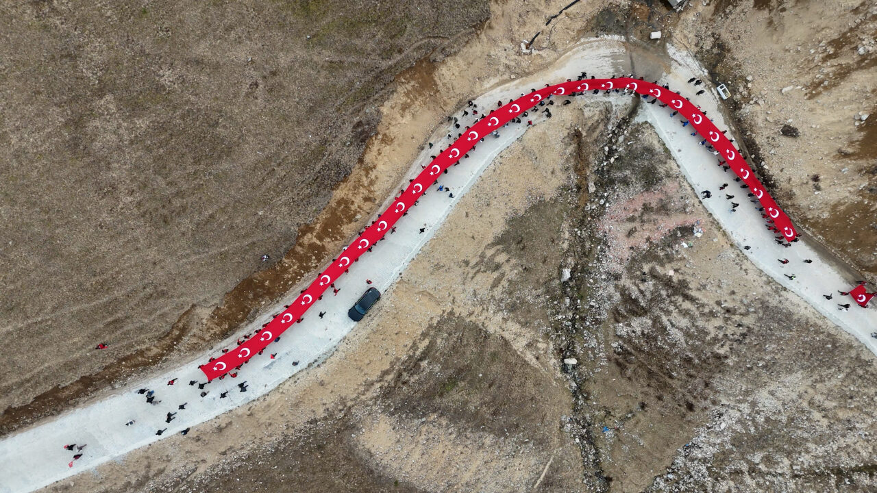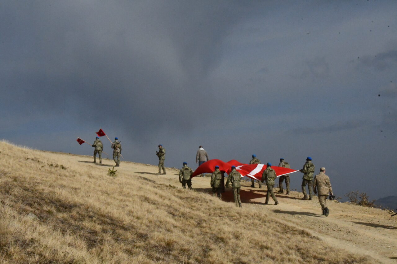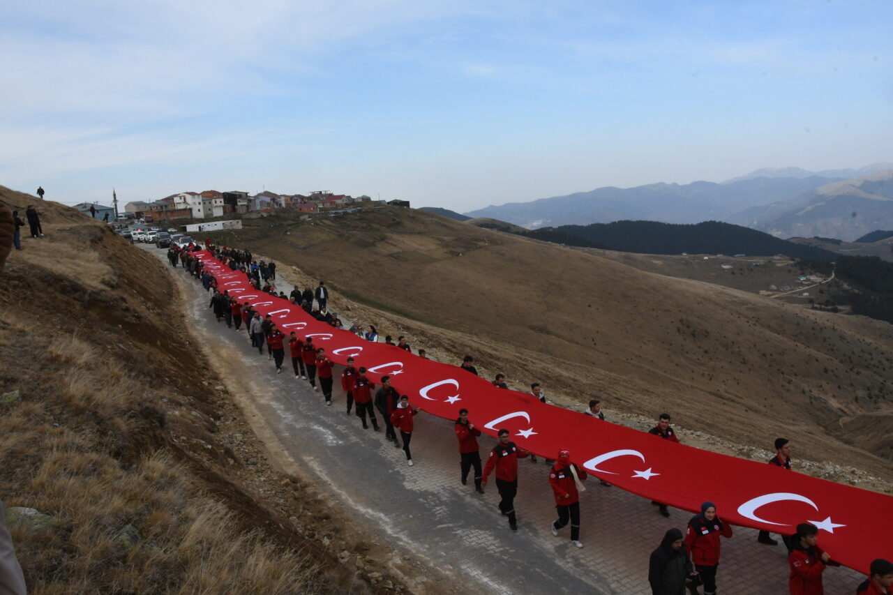 Türk bayrakları taşıyan grup, Güvende Yaylası’ndan Kabaktepe Şehitliği’ne 7 kilometrelik yürüyüş yaptı.