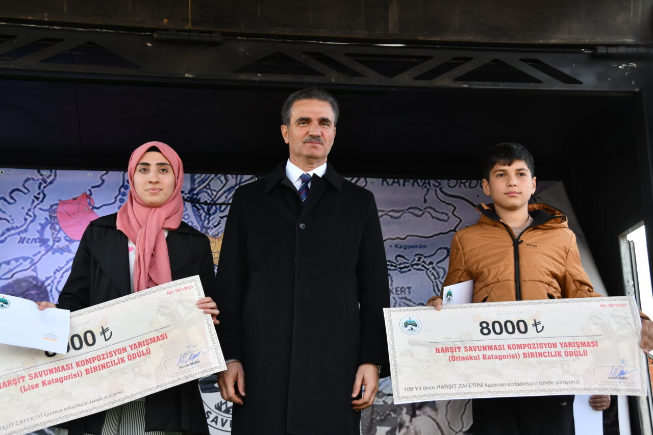 Programda, Harşit savunmasının tarihi önemine dair düzenlenen yarışmalarda dereceye giren öğrencilere protokol üyelerince ödülleri verildi.