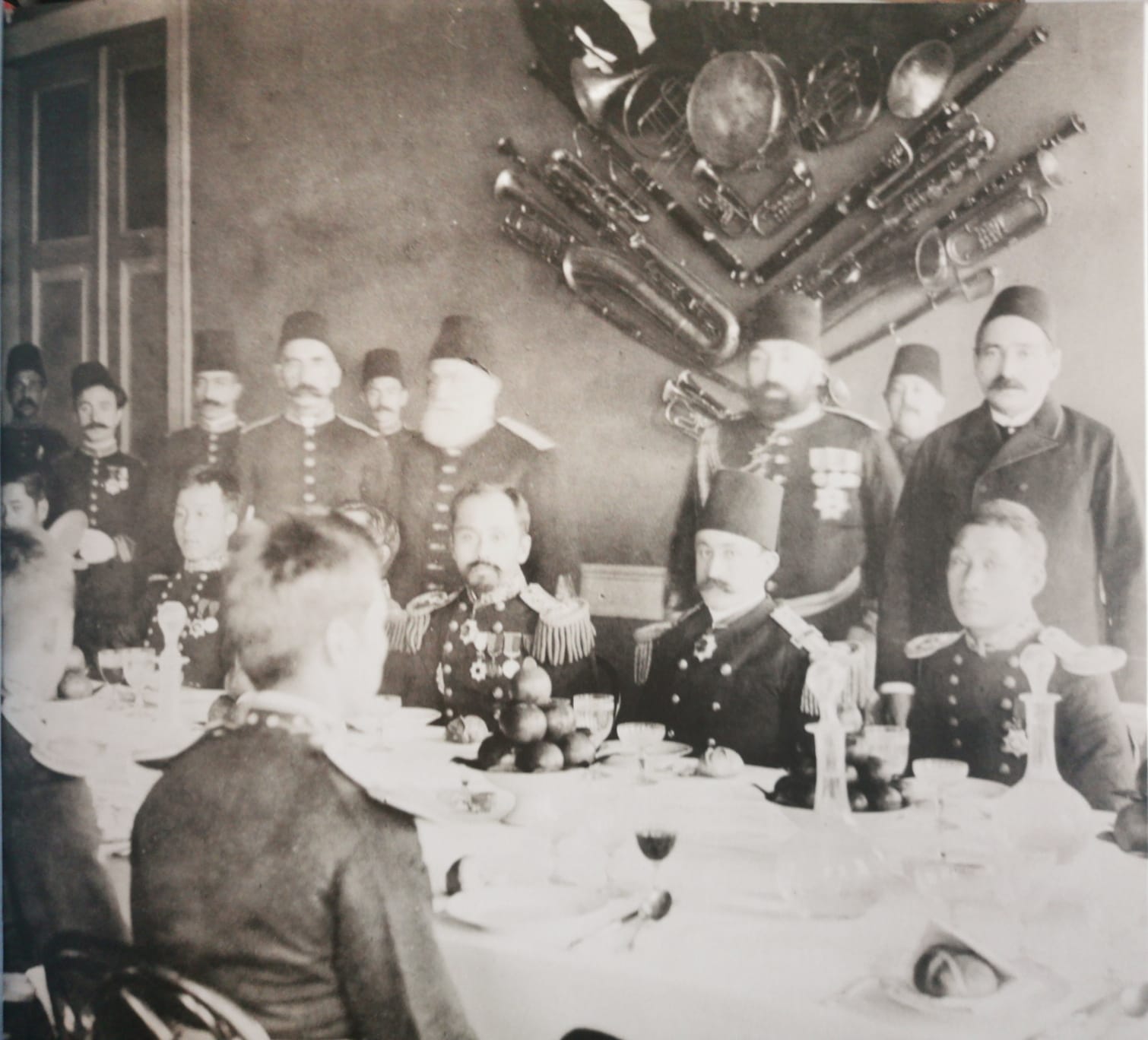 1891’de İstanbul’a gelen iki Japon kruvazörünün mürettebatı Gümuşsuyu kışlasında ziyafette.