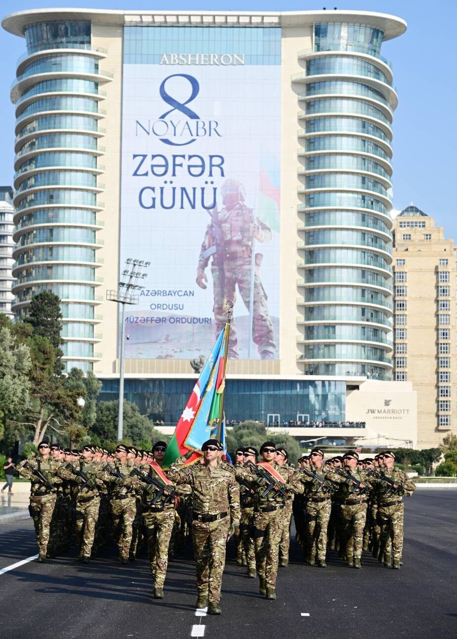 Aliyev, 2. Karabağ Savaşı’nda elde edilen zaferin 5. yıl dönümü dolayısıyla Bakü’de düzenlenen askeri geçit töreninde konuştu.