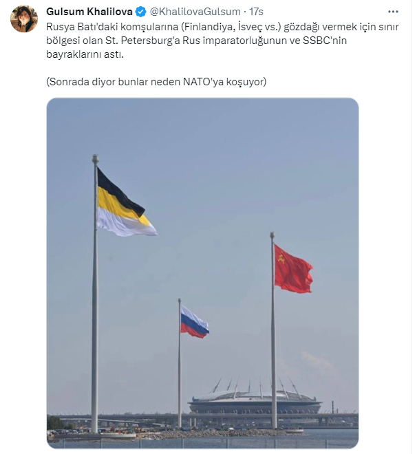 İki Baltık ülkesi, Türkiye ve NATO üçgeninde gelişmeler böyleyken Rusya’dan dikkat çekici bir sessiz protesto eylemi geldi. Buna göre Rusya’nın sınır şehri St. Petersburg’da eski ve yeni Rusya bayrakları asıldı. Bunlar Çarlık Rusya, Sovyet Rusya ve günümüz Rusya Federasyonu bayrakları.