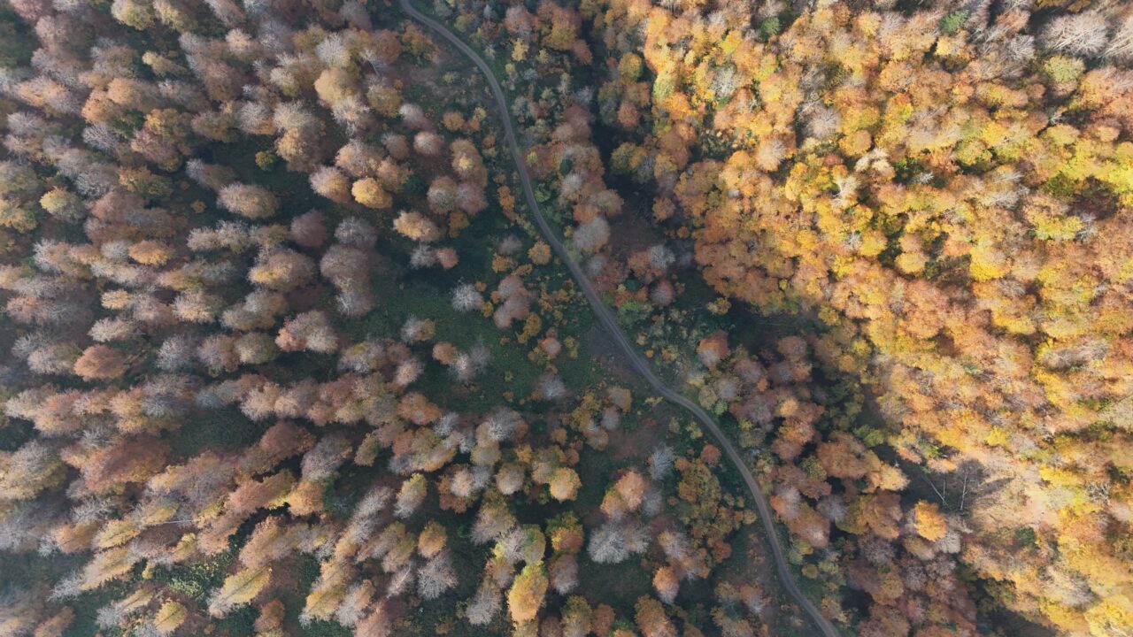 Bölgedeki sonbahar güzelliği dron ile görüntülendi.