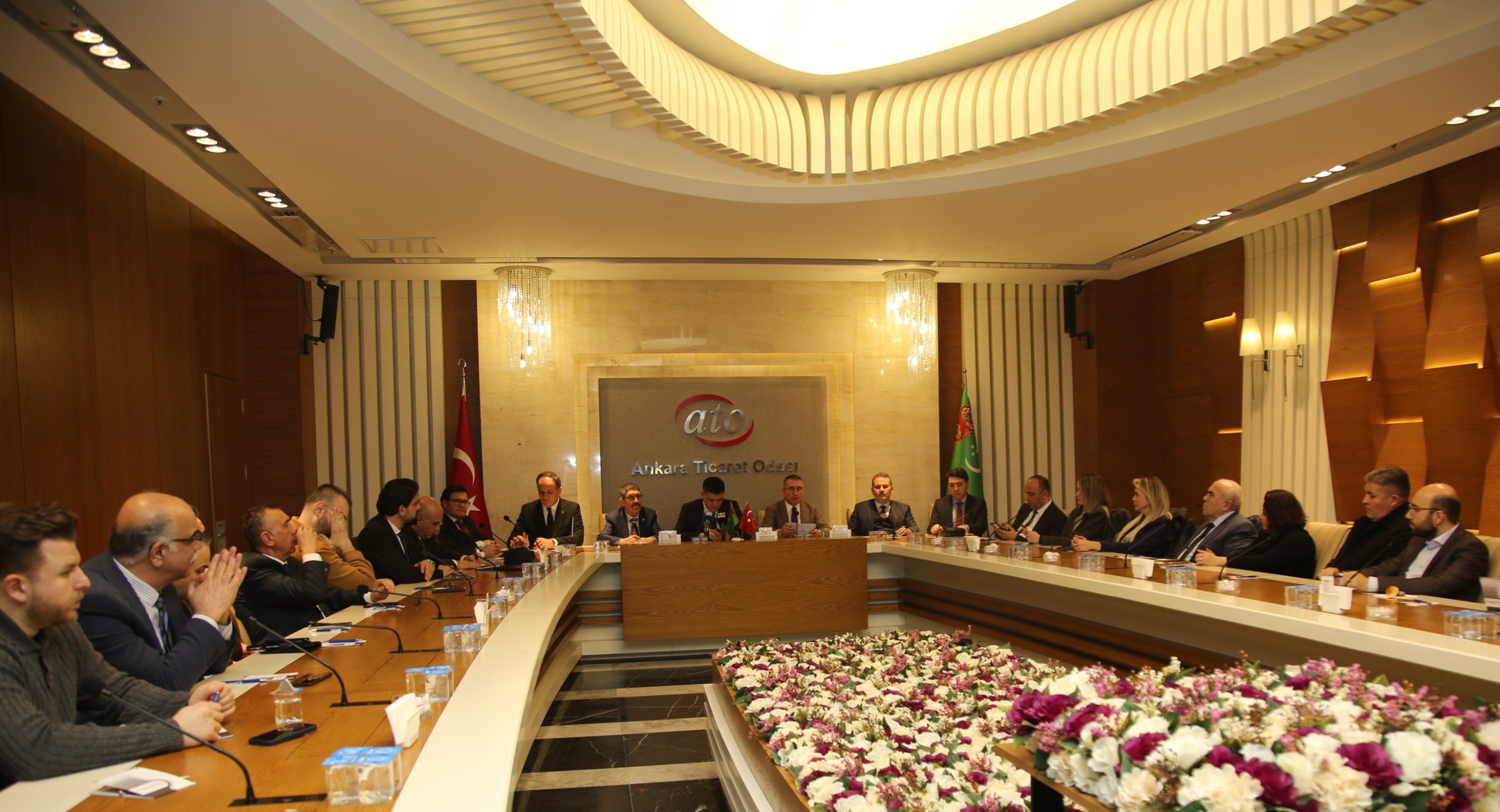 Türkiye ile Türkmenistan arasındaki ekonomik entegrasyonu hızlandırmak ve yeni işbirliği alanlarını belirlemek amacıyla; Türkmenistan Ankara Büyükelçiliği, EkoAvrasya Vakfı ve Türk Dünyası Sivil Toplum İşbirliği Derneği (TÜRKSİT) ortaklığında düzenlenen “Türkiye-Türkmenistan Ekonomik ve Ticari İşbirliği İmkanları Toplantısı”, Ankara Ticaret Odası (ATO) Duatepe VIP Salonu’nda gerçekleştirildi.