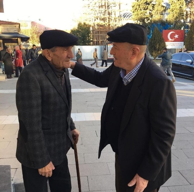 Ruhi Yamalıoğlu ve Uşak Burma Camii’nin emekli imamlarından, hâfız Abdullah Tez.