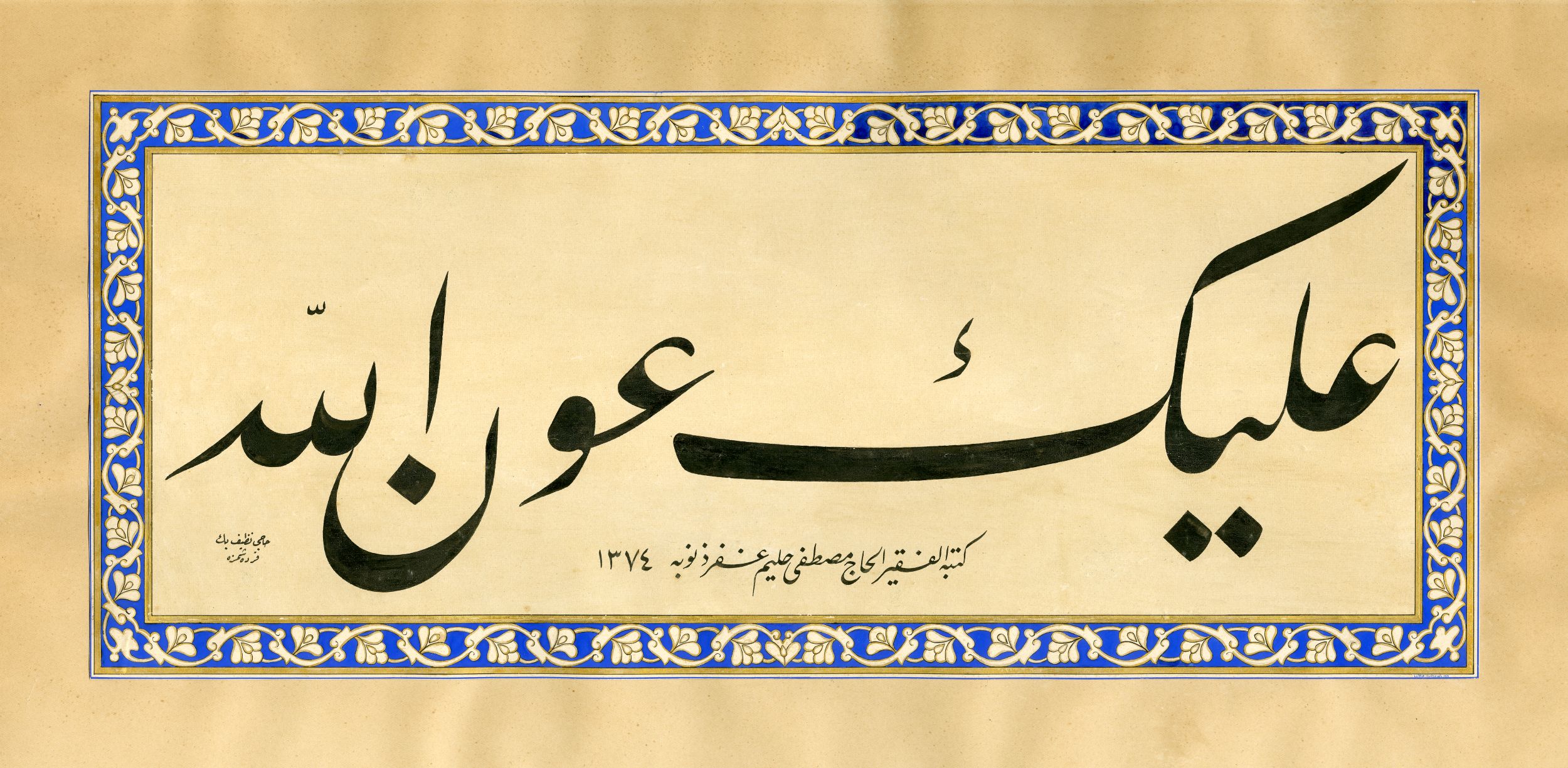 Fotoğraf-7: Mustafa Halim Efendi celî ta’lik levha: Aleyke avnullah. Hattat Nuriye Çelebi Koleksiyonu.