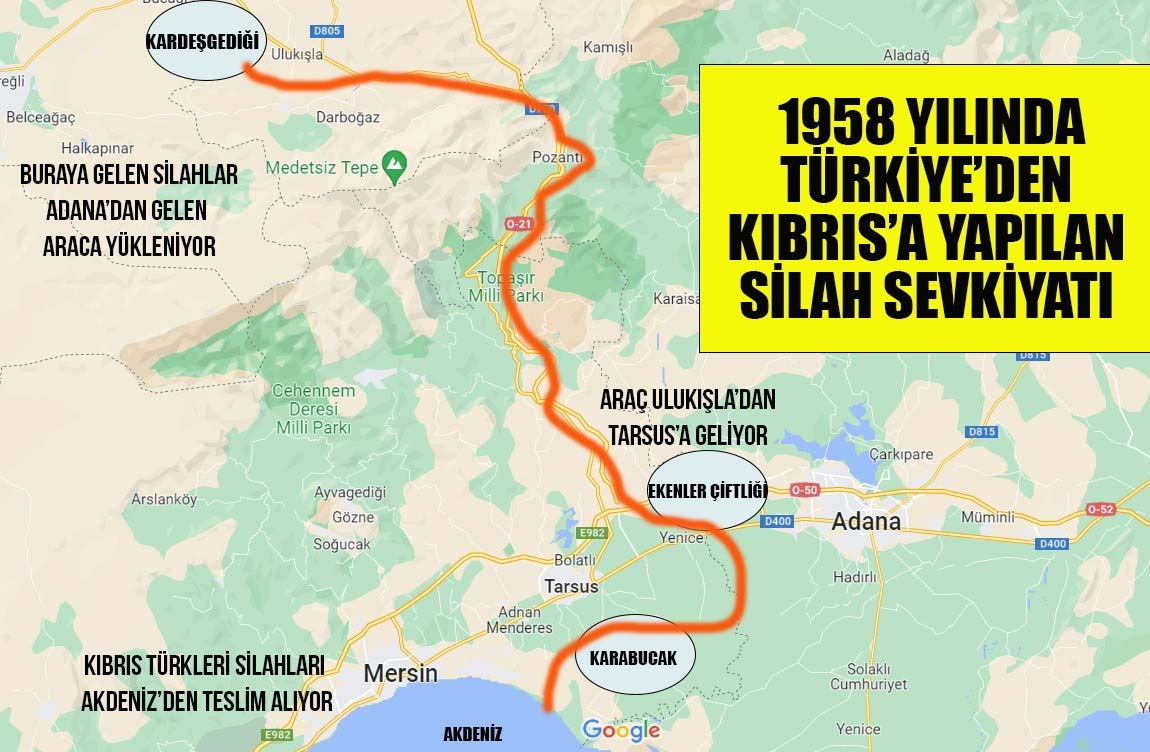 “Dönüş istikametimiz Tarsus’ta Kasım Ağa’nın Ekenler Çiftliği’ydi. Çiftlikte görevli 2 Tarsuslu genç silahları depoya taşıdıktan sonra görevimiz biter, gece karanlığında Adana’ya dönerdik. Sonrası; sonrasını duyumlarla takip ettim. Kıbrıs mücahitlerinin Karabucak ormanları civarında karaya yanaştırdıkları deniz motorları, malzemeleri gizlice Kıbrıs’a taşırdı. Böylece 6-7 seferi hatırlarım.”