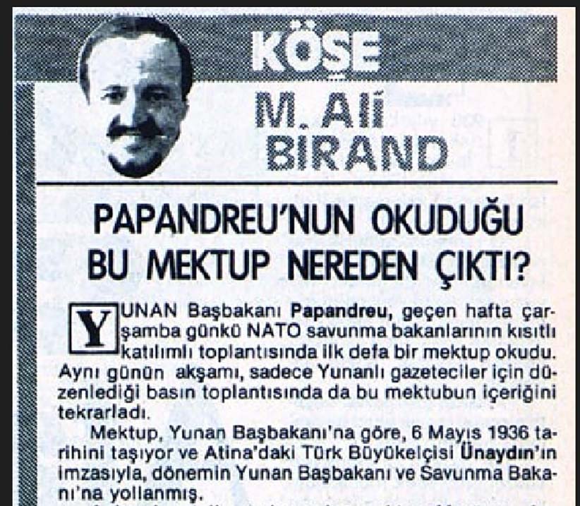 Tarih acımasızdır. Hakikat ise daha acımasız. Hakikat er veya geç ortaya çıkacak ve bütün perdeleme çabaları iflas edecektir. Nitekim Mehmet Ali Birand Milliyet’teki 5 Kasım 1984 tarihli köşesinde ilginç bir soru soruyordu: “Papandreu’nun okuduğu mektup nereden çıktı?”